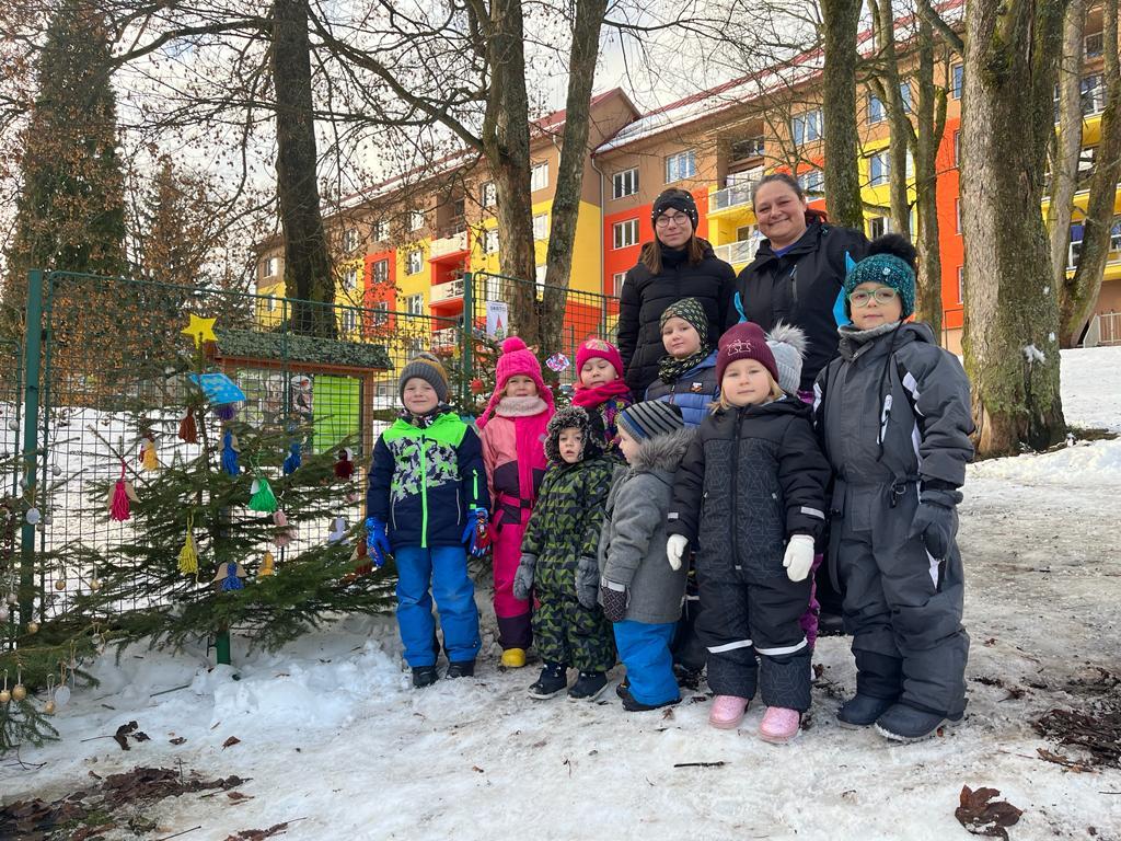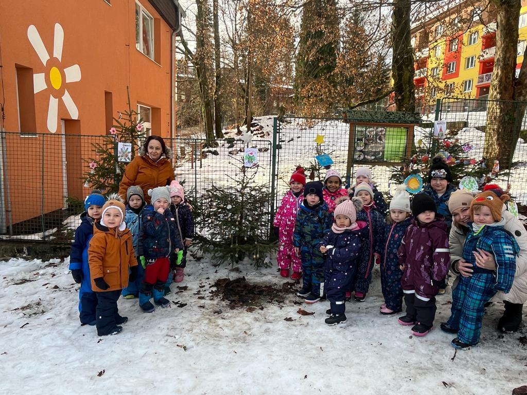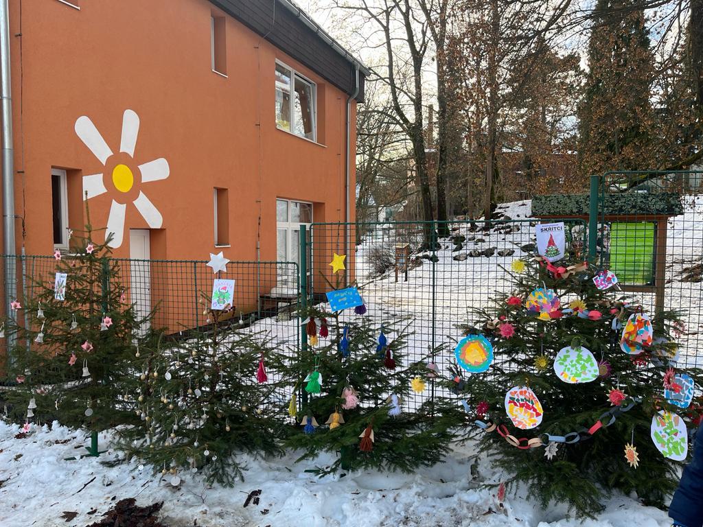 Všechny třídy naší školky si ozdobily vánoční stromeček. Prohlédněte si je před budovou, až půjdete kolem.