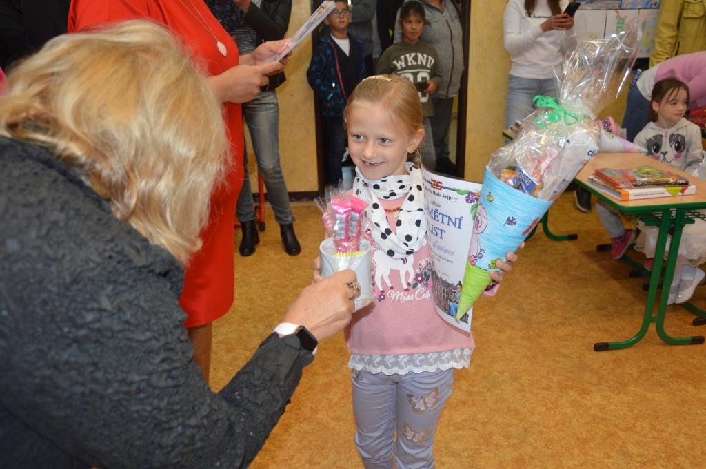 Den 1. září, důležité datum pro všechny školáky, ale nejvíc pro děti, které jdou do 1. třídy. Dnešního vítání se zúčastnilo 27 prvňáčků, které doprovodili hrdí rodiče, babičky, dědečkové, strýčkové i tetičky. Děti uvítala zástupkyně školy Mgr. Denisa Vacková, paní starostka města Vejprty Jitka Gavdunová a hlavně třídní učitelka Mgr. Vladimíra Kissová. Na památku prvňáčci obdrželi krásné hrnečky se jmény od paní Kugelové, ale také kornoutky s cukrovinkami, za které děkujeme paní Zahrádkové a paní Lukavecké.