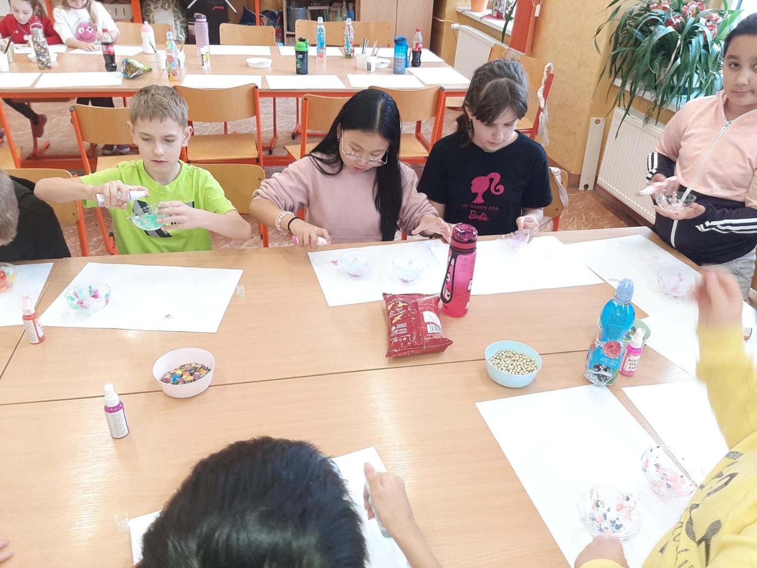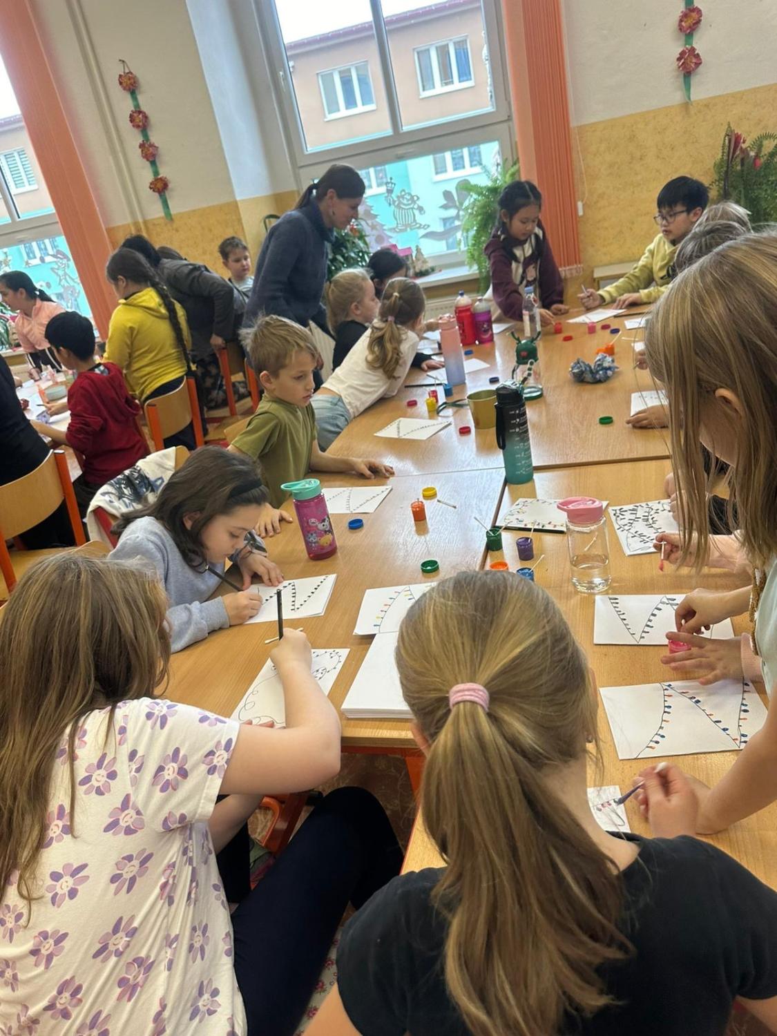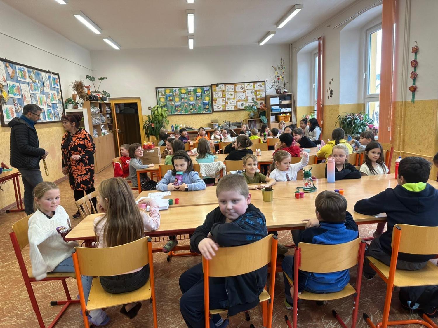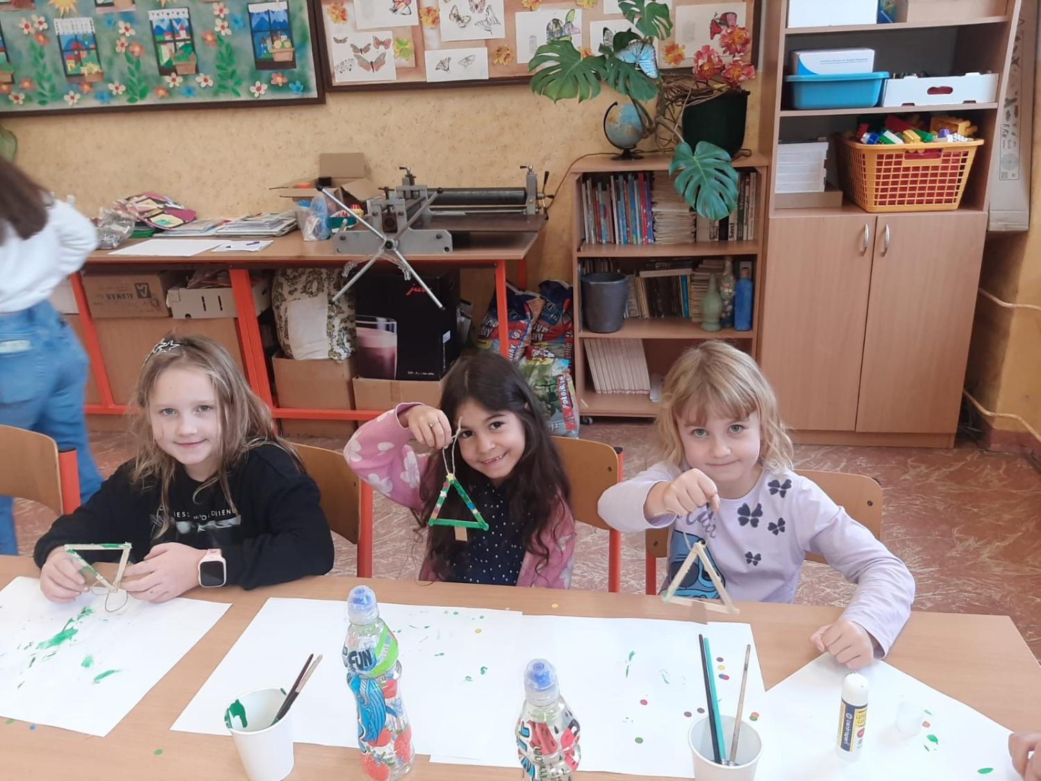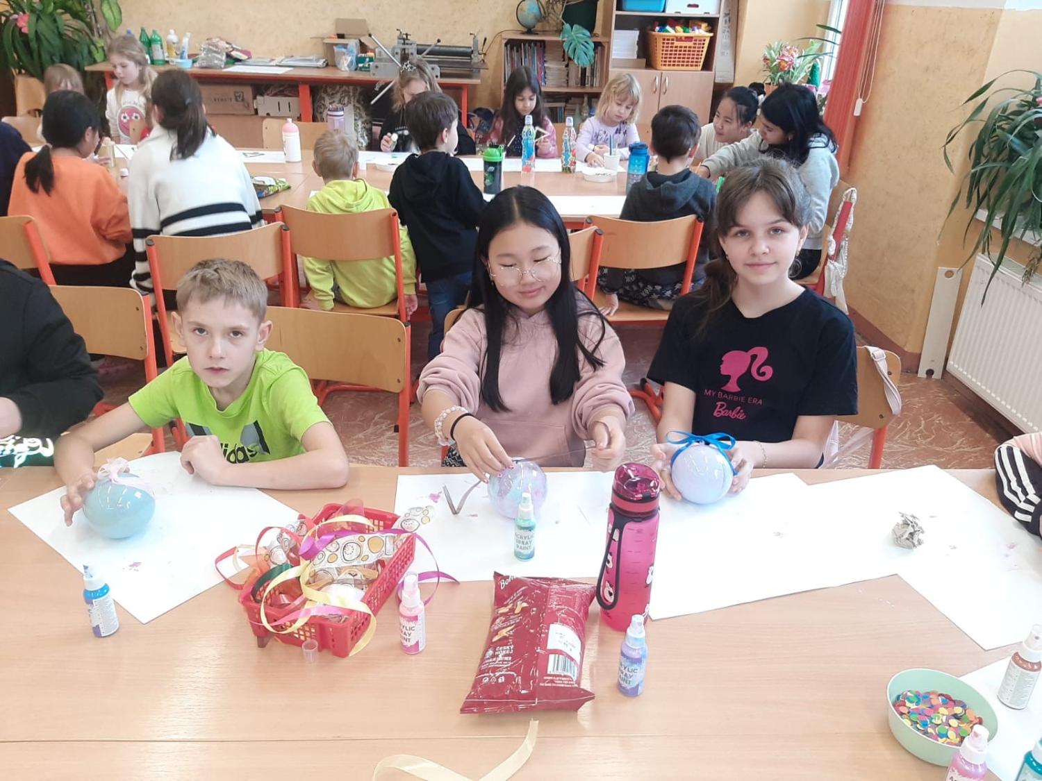 Dnes proběhla vánoční dílna pro všechny žáky 1.stupně, kde si děti za pomoci paních učitelek a asistentek vyrobily několik různorodých výrobků.