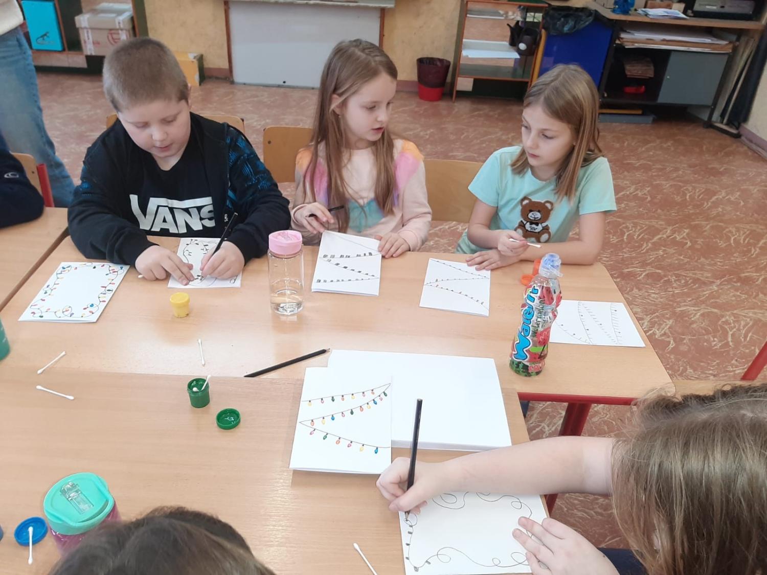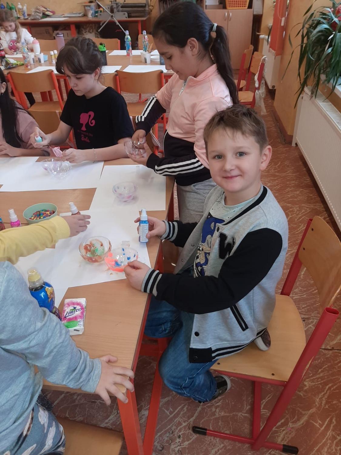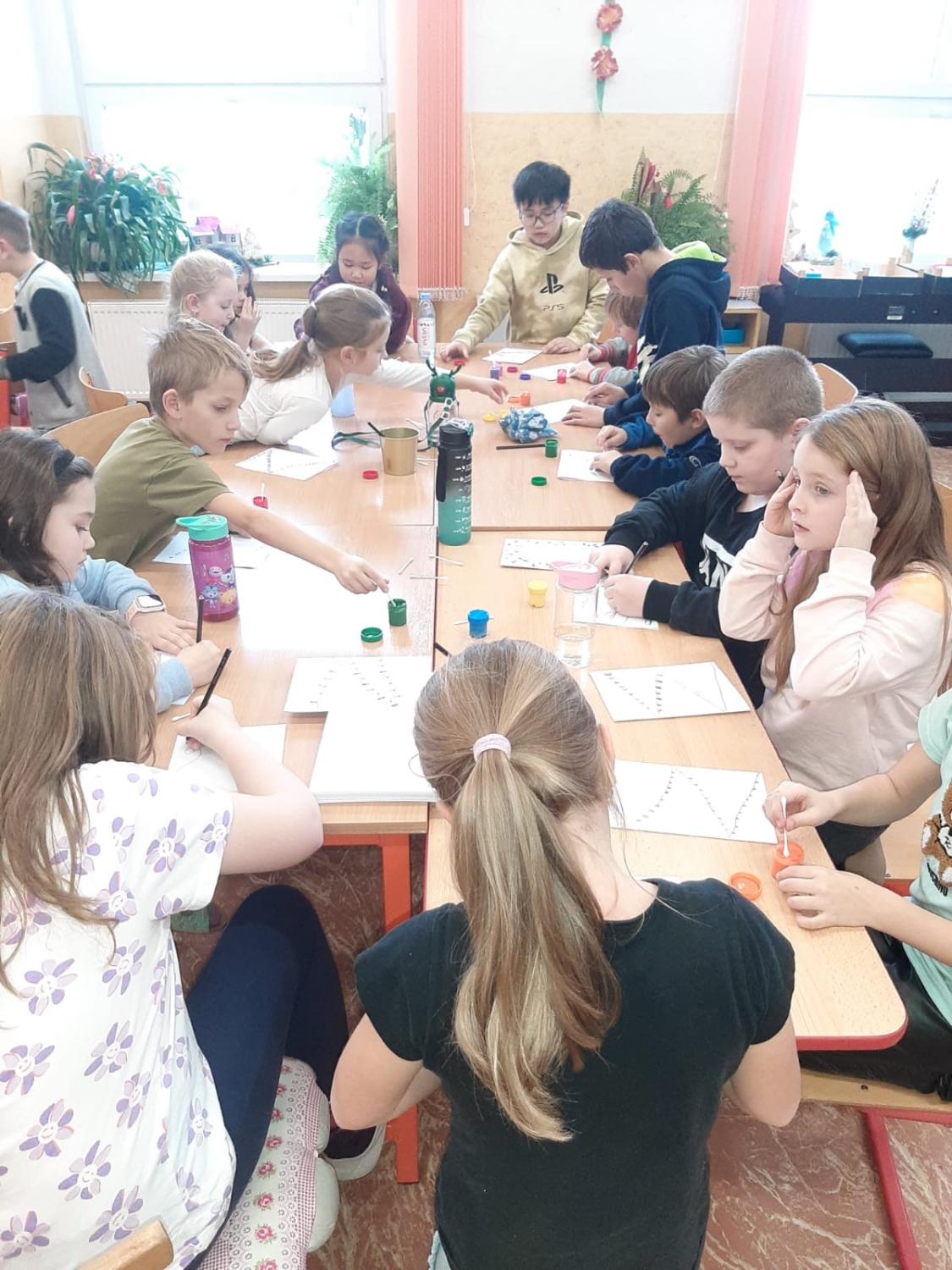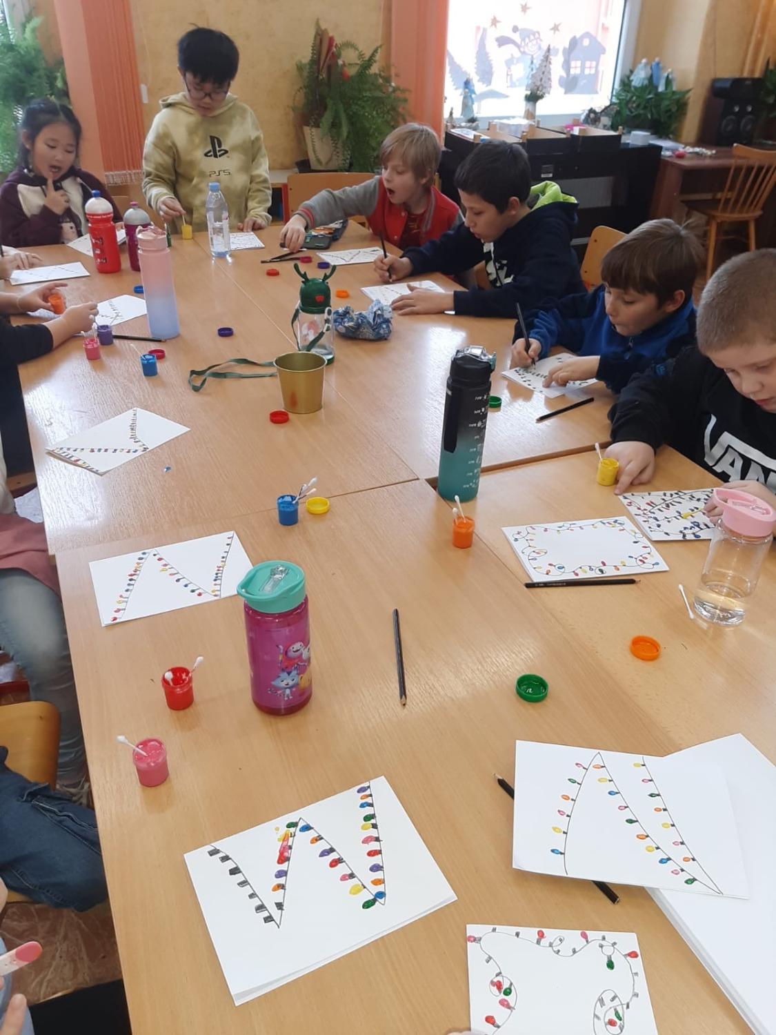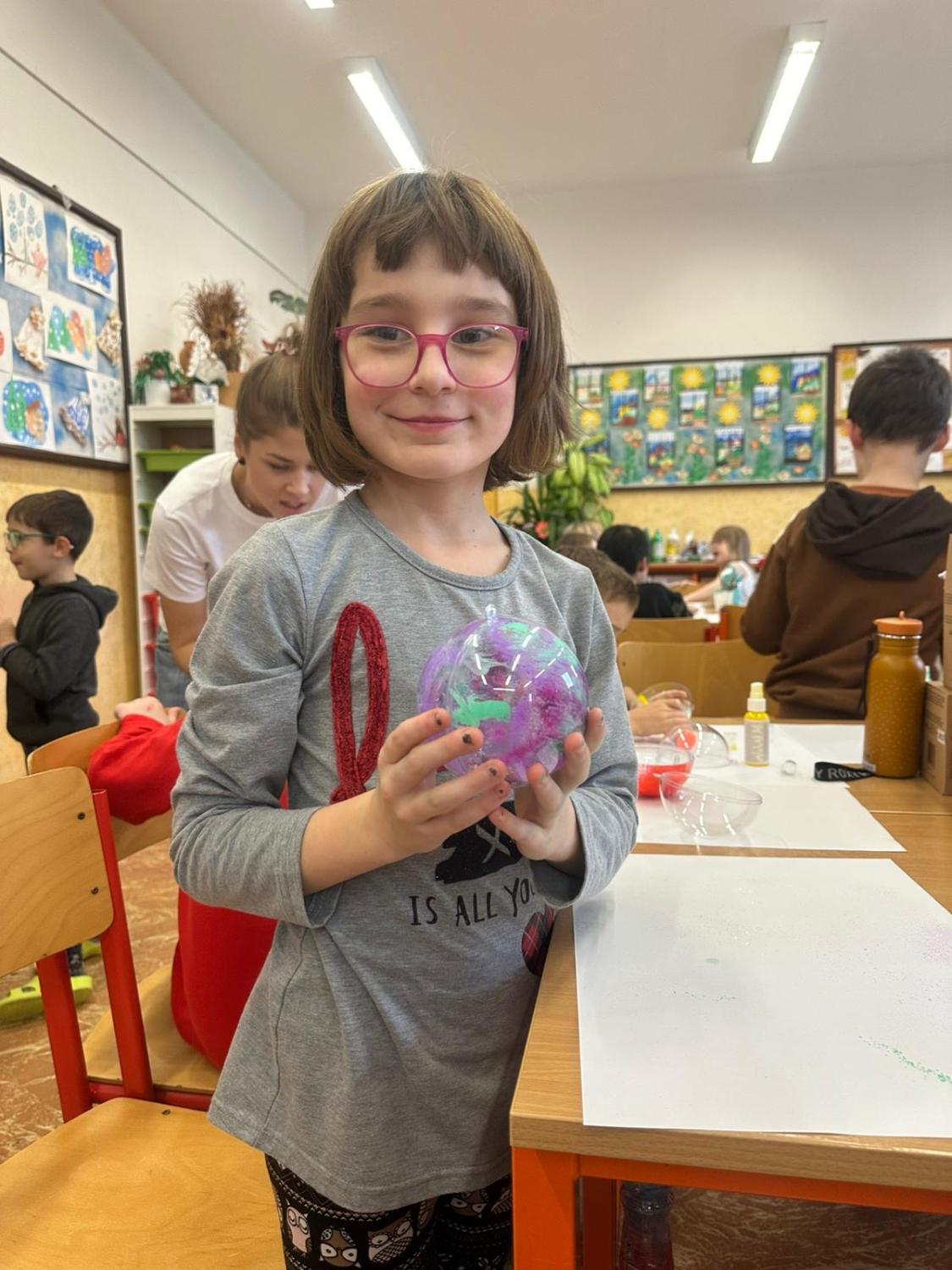 Dnes proběhla vánoční dílna pro všechny žáky 1.stupně, kde si děti za pomoci paních učitelek a asistentek vyrobily několik různorodých výrobků.