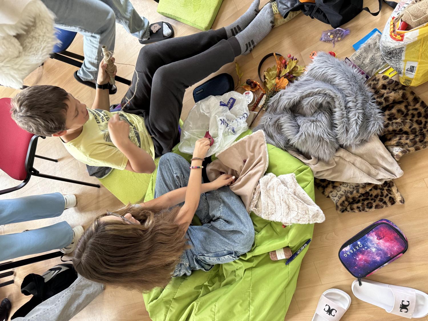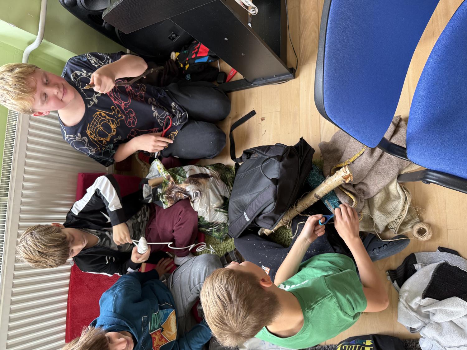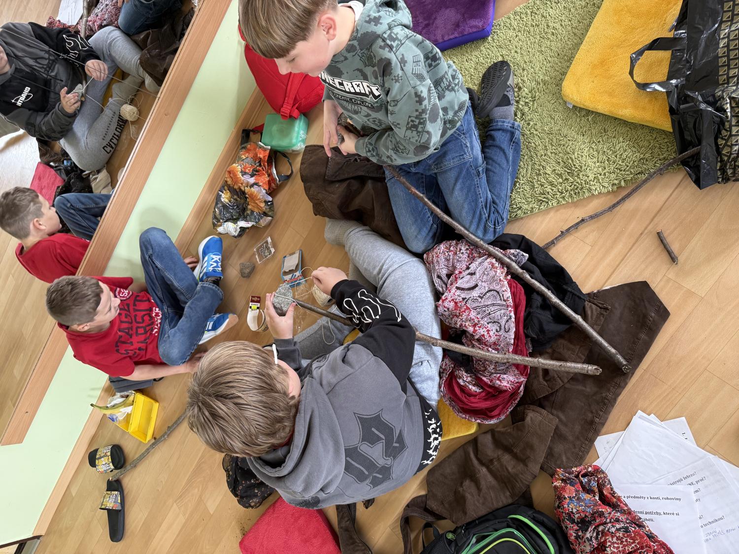 Poté si sami vyrobili pravěké oblečení, řetízky a náramky, a jako zbraně použili jednoduchý klacek s kamenem.