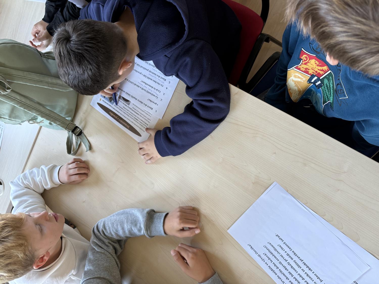 Šesťáci nejprve zjišťovali informace o době kamenné, bronzové a železné, poznávali tehdejší způsob života a vývoj člověka.